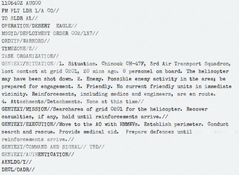 Ciężarówki wyładują wasze drużyny wzdłuż północnej i zachodniej flanki miasta o 04:15 czasu lokalnego. Drużyna Alpha zaatakuje z zachodu, drużyny Bravo i Charlie z północy....